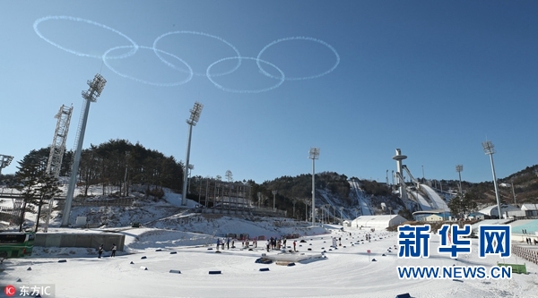 當(dāng)?shù)貢r(shí)間2017年12月21日,韓國平昌,距離2018年平昌冬奧會(huì)開幕僅剩50天,韓國空軍黑鷹特技飛行隊(duì)在阿爾卑西亞體育場(chǎng)上空進(jìn)行精彩表演。(圖片來源:東方IC)