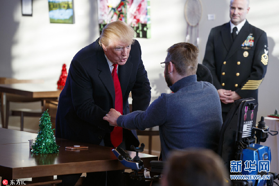 當(dāng)?shù)貢r(shí)間21日,美國(guó)馬里蘭州,美國(guó)總統(tǒng)特朗普訪(fǎng)問(wèn)沃爾特-里德國(guó)家軍事醫(yī)療中心,慰問(wèn)受傷士兵和家屬,并與退伍的海軍陸戰(zhàn)隊(duì)中士John Peck交談。