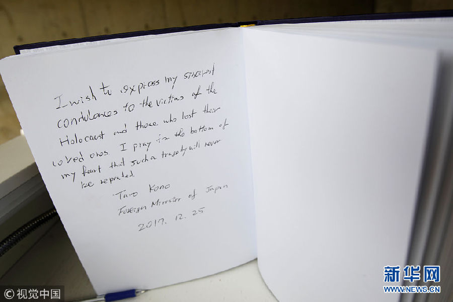 12月25日,耶路撒冷,日本外相河野太郎訪問耶路撒冷,參觀大屠殺紀(jì)念館,獻(xiàn)花悼念死難者。 (圖片來源:視覺中國)