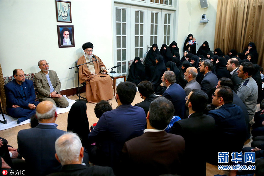 1月2日,伊朗德黑蘭,伊朗最高領(lǐng)袖哈梅內(nèi)伊?xí)娨晾恃车勒呒胰?,并在會面上發(fā)表講話。據(jù)媒體報道,哈梅內(nèi)伊稱國內(nèi)爆發(fā)的抗議活動是由外國勢力操控。他表示:“近日,伊朗的敵人向這些鬧事者們提供著金錢、武器和政治的支持,以讓他們來傷害伊朗”。(圖片來源:東方IC)