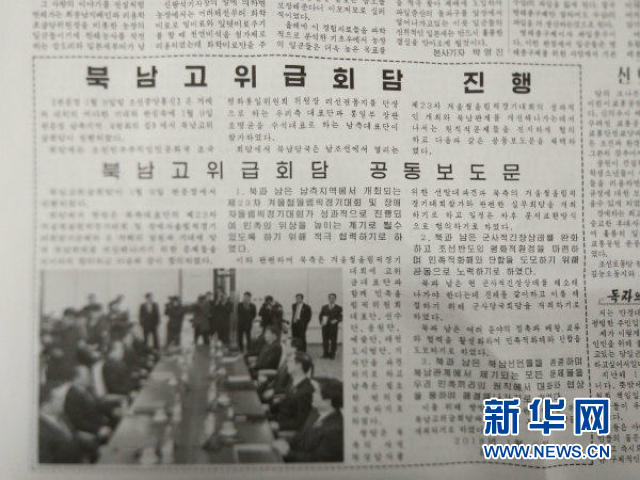 文章前一部分是對會談情況的簡單介紹,后一部分直接發(fā)布了朝韓高級別會談聯(lián)合新聞公報(bào)的內(nèi)容。