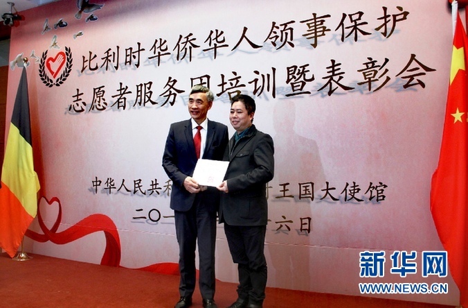 新華網(wǎng)布魯塞爾1月16日專電(記者潘革平)中國(guó)駐比利時(shí)大使館16日在布魯塞爾舉行隆重表彰儀式,對(duì)多年來在領(lǐng)事保護(hù)領(lǐng)域表現(xiàn)突出的21名領(lǐng)保志愿者予以表彰,其中包括由比利時(shí)中餐業(yè)聯(lián)合會(huì)會(huì)長(zhǎng)楊丐鏡牽頭、去年9月協(xié)助大使館成功解決300多名中國(guó)游客因航空公司突然倒閉而滯留比利時(shí)列日機(jī)場(chǎng)問題的12名志愿者。