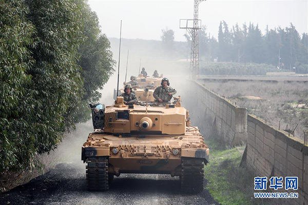 1月21日,在土耳其哈塔伊省與敘利亞邊境地區(qū),土軍地面部隊開往敘利亞北部阿夫林。土耳其總理耶爾德勒姆21日宣布,土耳其軍隊當(dāng)天上午已進(jìn)入敘利亞邊境,展開對敘北部阿夫林的地面軍事行動。 新華社發(fā)
