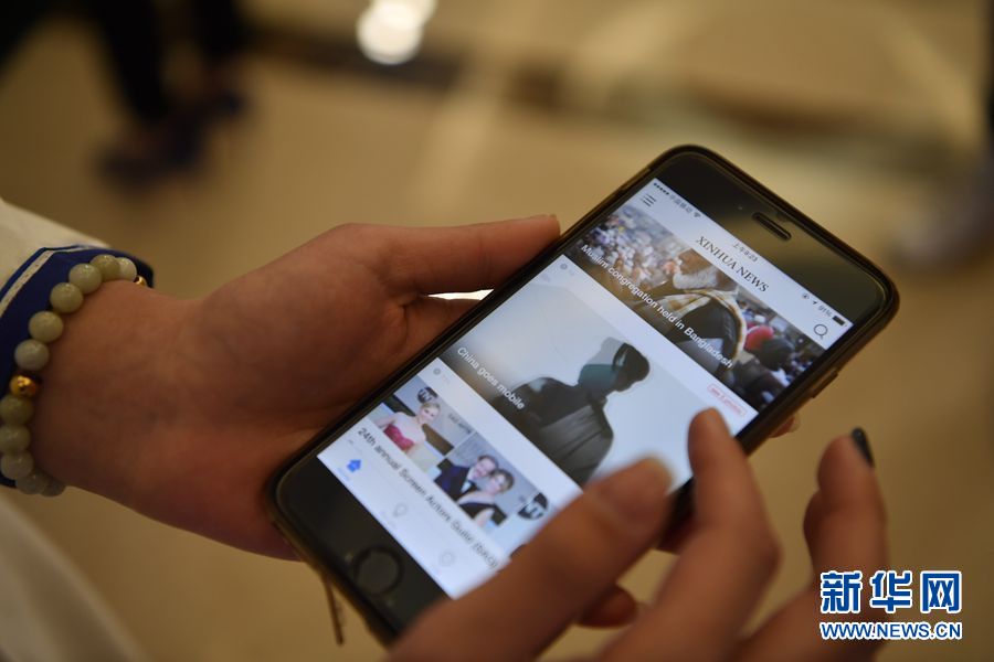 1月23日上午10:00,新華社英文客戶端上線發(fā)布會在總社大廈多功能廳舉行。圖為工作人員展示新華社英文客戶端。新華社記者 金良快攝