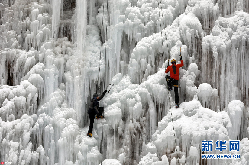 當(dāng)?shù)貢r間1月26日,伊朗Meygun,攀巖愛好者在Meygun冰上攀巖俱樂部挑戰(zhàn)冰瀑攀巖。據(jù)悉,Meygun冰上攀巖俱樂部每年都會迎來數(shù)千專業(yè)攀巖人士以及學(xué)生。(圖片來源:東方IC)