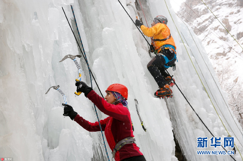當?shù)貢r間1月26日,伊朗Meygun,攀巖愛好者在Meygun冰上攀巖俱樂部挑戰(zhàn)冰瀑攀巖。據(jù)悉,Meygun冰上攀巖俱樂部每年都會迎來數(shù)千專業(yè)攀巖人士以及學生。(圖片來源:東方IC)