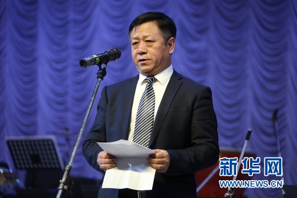 中國駐哈薩克斯坦大使張漢暉為音樂會(huì)致辭。新華網(wǎng)發(fā) (阿比洛夫攝)