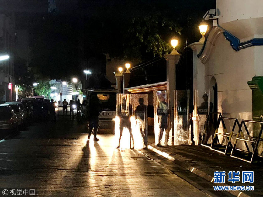 當地時間2月5日,馬爾代夫馬累,安全部隊駐守在最高法院外。馬爾代夫法律事務部長沙庫爾5日晚通過國家電視臺宣布,馬爾代夫總統亞明已正式發(fā)布命令,從當天開始全國實行為期15天的緊急狀態(tài)。(圖片來源:視覺中國)