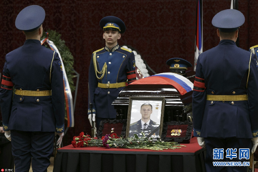 當(dāng)?shù)貢r(shí)間2018年2月8日,俄羅斯沃羅涅日市,俄羅斯為在敘利亞戰(zhàn)死飛行員Roman Filipov舉行葬禮。2月3日,俄飛行員Filipov駕駛一架蘇-25戰(zhàn)機(jī)在伊德利卜被敘反政府武裝擊落,F(xiàn)ilipov成功彈射跳傘,但最后在與武裝分子戰(zhàn)斗中引爆手榴彈犧牲。(圖片來(lái)源:東方IC)