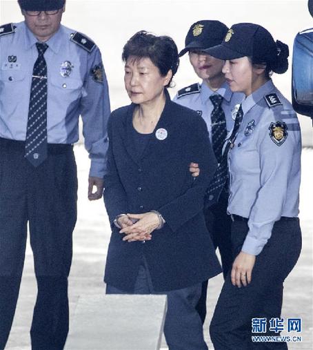 這是2017年5月23日韓國前總統(tǒng)樸槿惠(中)抵達(dá)首爾中央地方法院的資料照片。新華社發(fā)(李相浩攝)