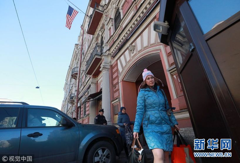 當(dāng)?shù)貢r(shí)間3月30日,俄羅斯圣彼得堡,美國(guó)總領(lǐng)事館。俄羅斯外交部長(zhǎng)拉夫羅夫3月29日發(fā)布消息稱,作為對(duì)“斯克里帕爾事件”的回應(yīng),俄羅斯將驅(qū)逐60名美國(guó)外交官,關(guān)閉美國(guó)駐圣彼得堡總領(lǐng)事館。(圖片來源:視覺中國(guó))