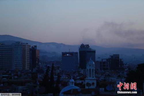 2018年4月14日,敘利亞首都大馬士革不同地區(qū)遭遇空襲后煙霧升起。