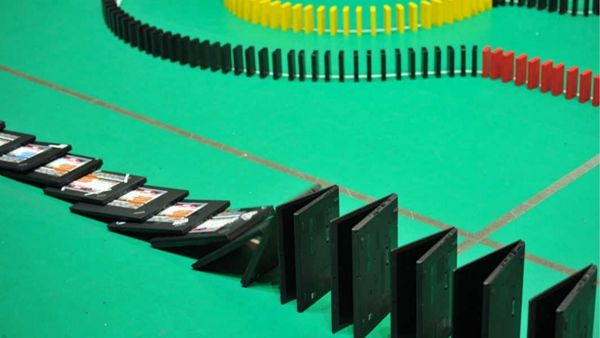 此次的多米諾挑戰(zhàn)除了520臺(tái)筆記本外,還準(zhǔn)備了45000枚骨牌。活動(dòng)主題以及工程師們標(biāo)志性的代碼都成為了多米諾骨牌整體設(shè)計(jì)的一部分。最終,所有多米諾骨牌和筆記本電腦全部被成功推倒。