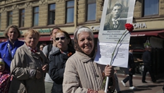 在衛(wèi)國戰(zhàn)爭中犧牲或戰(zhàn)后去世的老戰(zhàn)士的親友及后代9日下午帶著老戰(zhàn)士的照片或畫像,在莫斯科市3條主要街道舉行了“不朽軍團(tuán)”游行紀(jì)念活動(dòng),有近百萬民眾參加。
