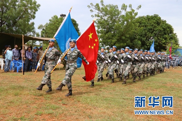 在隨后舉行的閱兵儀式上,中國維和部隊(duì)派出23名工兵組成的方隊(duì)。他們踏著雄壯的步伐,肩扛和平的旗幟,整齊地走過閱兵臺(tái),展現(xiàn)了中國人民解放軍“威武之師、文明之師、勝利之師”的良好形象,受到聯(lián)合國在場(chǎng)人員高度評(píng)價(jià)。