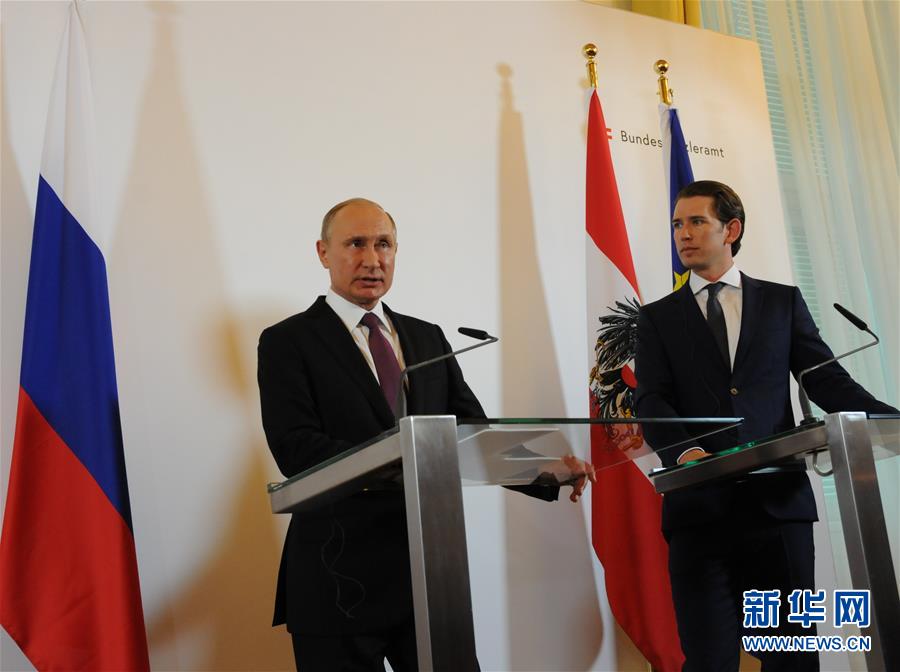 6月5日,在奧地利維也納總統(tǒng)府,俄羅斯總統(tǒng)普京(左)和奧地利總理庫(kù)爾茨出席新聞發(fā)布會(huì)。新華社記者 劉向 攝