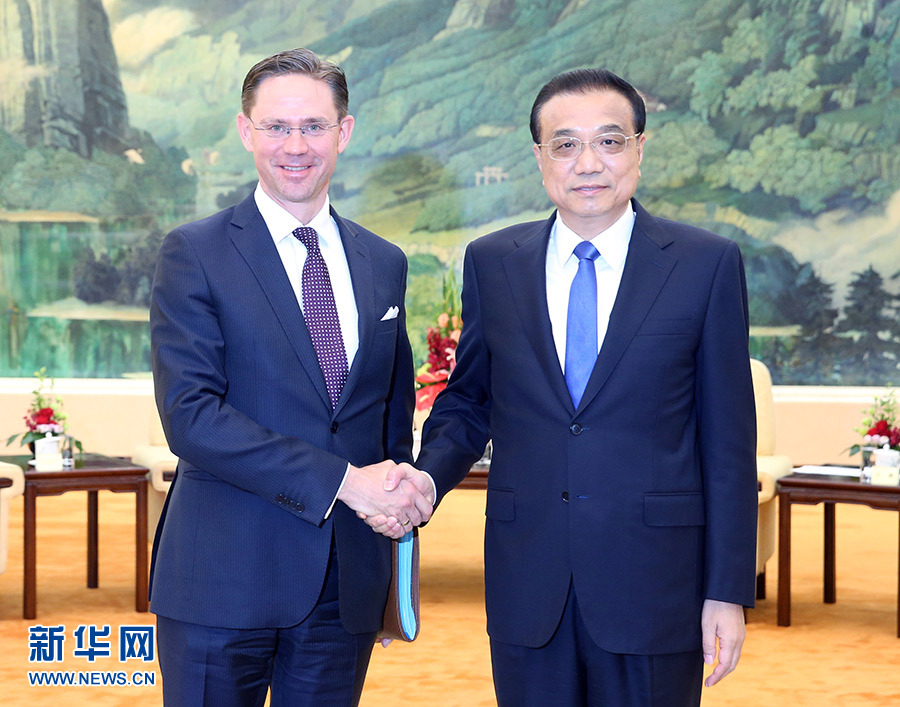 6月25日,國務(wù)院總理李克強(qiáng)在北京人民大會(huì)堂會(huì)見來華出席第七次中歐經(jīng)貿(mào)高層對話的歐盟委員會(huì)副主席卡泰寧。 新華社記者 姚大偉 攝