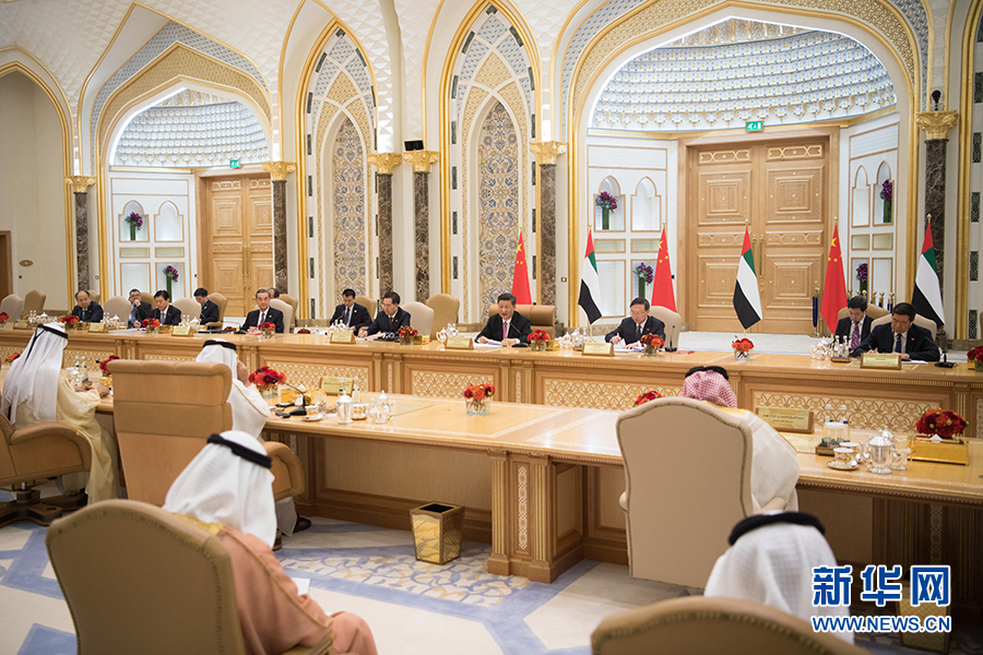 7月20日,國(guó)家主席習(xí)近平在阿布扎比同阿聯(lián)酋副總統(tǒng)兼總理穆罕默德、阿布扎比王儲(chǔ)穆罕默德舉行會(huì)談。 新華社記者李學(xué)仁攝?