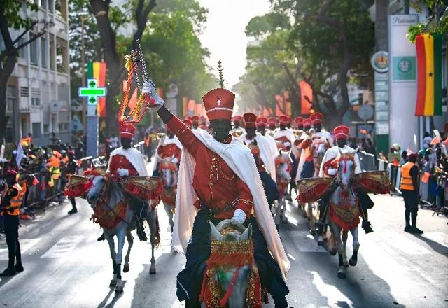 塞內(nèi)加爾當(dāng)?shù)孛癖娚碇?jié)日盛裝,夾道歡迎習(xí)近平主席。(新華社記者燕雁攝)
