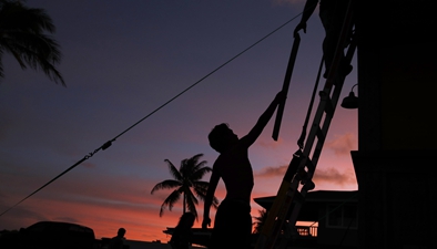 7月7日,在肯尼亞馬賽馬拉大草原奧肯耶保護區(qū),卓強用望遠鏡觀察保護區(qū)情況。新華社記者 呂帥 攝
