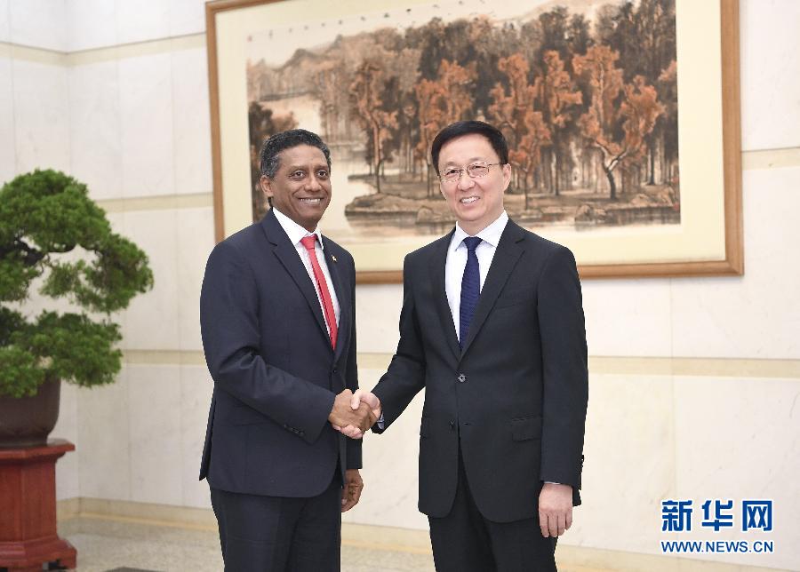 新華社北京9月1日電(記者鄭明達)國務院副總理韓正1日在釣魚臺國賓館會見塞舌爾總統(tǒng)富爾。