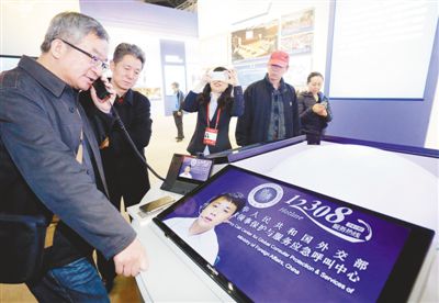 2017年10月27日,市民在北京展覽館體驗外交部全球領(lǐng)事保護(hù)與服務(wù)應(yīng)急呼叫中心12308熱線。人民視覺
