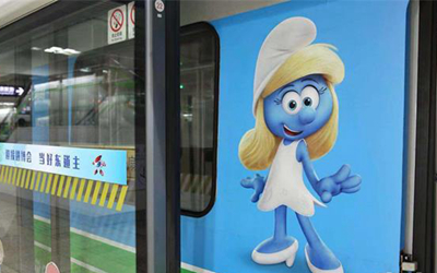 “藍(lán)精靈號”地鐵上,個性各異的藍(lán)精靈們則“站立”在車廂、車門、車壁上,幾乎與乘客“等大”。這些藍(lán)精靈卡通形象活靈活現(xiàn),乘客可以在地鐵上重溫美好的童年時光。