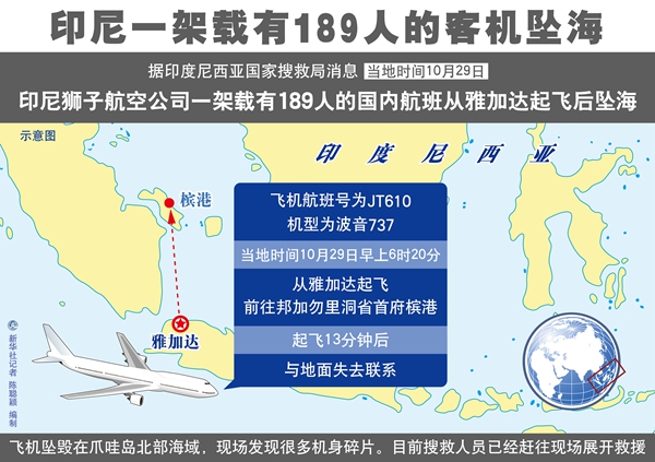 獅航這架載有189人的國內(nèi)航班當(dāng)天早上6時20分從雅加達(dá)起飛,前往邦加勿里洞省首府檳港,但在起飛13分鐘后與地面失去聯(lián)系。飛機(jī)隨后被確認(rèn)墜海。