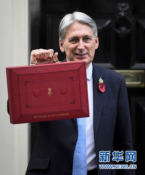 10月29日,在英國倫敦,英國財政大臣菲利普·哈蒙德展示手中的“預(yù)算盒”,準(zhǔn)備向議會提交預(yù)算案。當(dāng)天他在議會公布預(yù)算案時表示,英國將結(jié)束財政緊縮,努力爭取“脫歐”最好結(jié)果的同時,為“脫歐”各種可能性做好準(zhǔn)備。 新華社發(fā)(史蒂芬·程 攝)