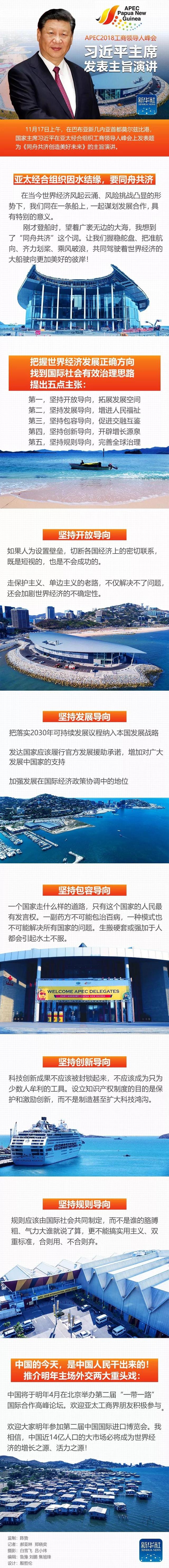11月17日上午,在巴布亞新幾內(nèi)亞首都莫爾茲比港,國家主席習(xí)近平在亞太經(jīng)合組織工商領(lǐng)導(dǎo)人峰會上發(fā)表題為《同舟共濟創(chuàng)造美好未來》的主旨演講。