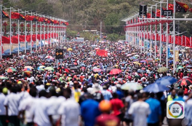 2018年11月16日,巴布亞新幾內(nèi)亞首都莫爾茲比港。民眾慶祝中國援建的獨立大道正式啟用。(新華社記者費茂華攝)