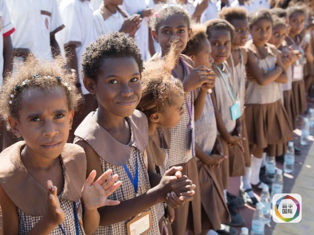 2018年11月13日,巴布亞新幾內(nèi)亞首都莫爾茲比港。孩子們對即將投入使用的中國-巴新友誼學校·布圖卡學園充滿期待。(新華社記者黃敬文攝)