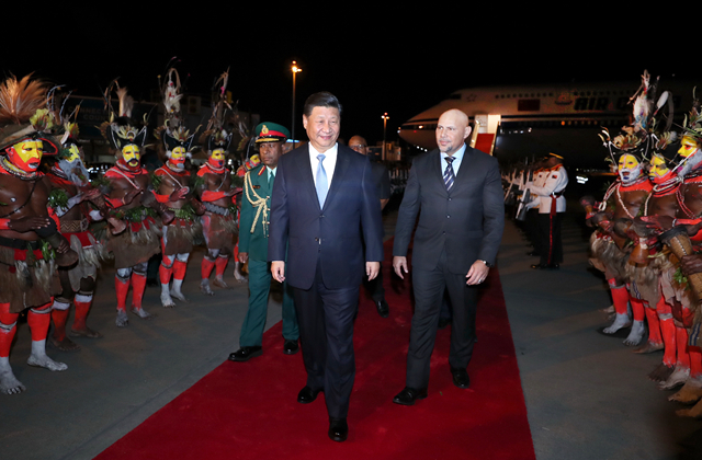 2018年11月15日,國家主席習近平乘專機抵達莫爾茲比港,開始對巴布亞新幾內(nèi)亞獨立國進行國事訪問、同建交太平洋島國領(lǐng)導人會晤并出席亞太經(jīng)合組織第二十六次領(lǐng)導人非正式會議。(新華社記者鞠鵬攝)