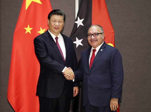 2018年11月16日,國家主席習近平在莫爾茲比港同巴布亞新幾內(nèi)亞總理奧尼爾會談。(新華社記者丁林攝)