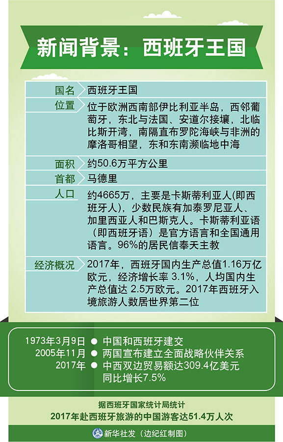 ?。保梗罚衬辏吃拢谷?,中國和西班牙建交。建交后,兩國在各領(lǐng)域的友好合作關(guān)系不斷發(fā)展。2005年11月,兩國宣布建立全面戰(zhàn)略伙伴關(guān)系。西班牙是歐盟國家中最早同中國建立全面戰(zhàn)略伙伴關(guān)系的國家之一。