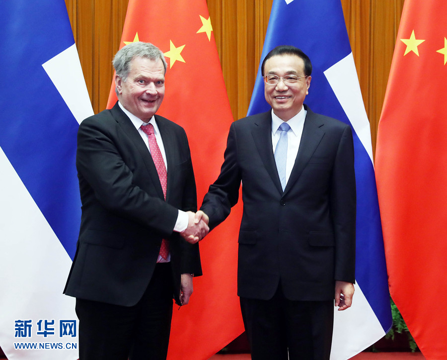 李克強(qiáng)表示,中芬關(guān)系長期以來保持良好穩(wěn)定發(fā)展,走在中國同西方國家關(guān)系的前列。昨天,習(xí)近平主席同總統(tǒng)先生舉行了富有成果的會(huì)談,共同規(guī)劃兩國關(guān)系未來發(fā)展。中方愿同芬方繼續(xù)努力,推動(dòng)中芬合作取得更多新成果,為中芬關(guān)系不斷注入新動(dòng)力。