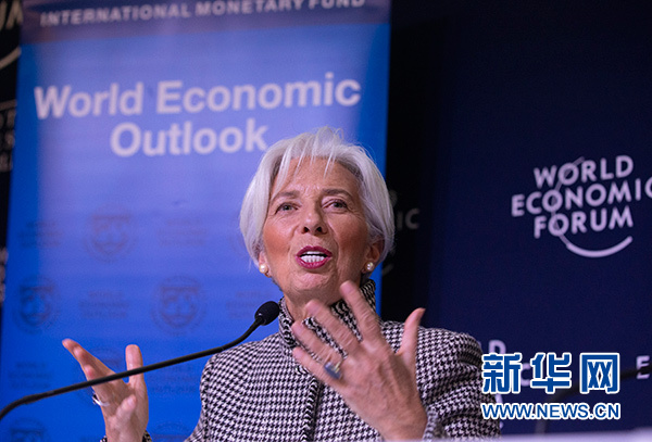 1月21日,在瑞士達(dá)沃斯,國(guó)際貨幣基金組織總裁拉加德在記者會(huì)上講話。 新華社記者 徐金泉 攝