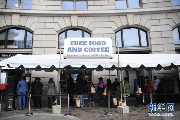 1月23日,在美國首都華盛頓,一些聯(lián)邦政府雇員在一家公益組織的“應(yīng)急食堂”外排隊(duì)領(lǐng)取免費(fèi)餐。 新華社記者 劉杰 攝