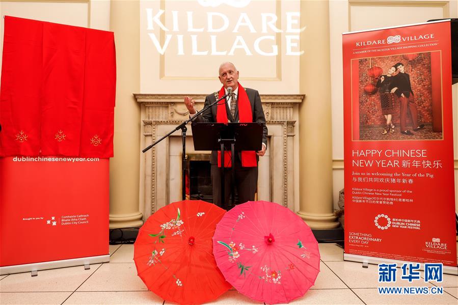 2月1日,在愛爾蘭首都都柏林市美術(shù)館,都柏林市長尼亞爾·林在中國新年慶典開幕式暨音樂會上致辭。新華社發(fā)