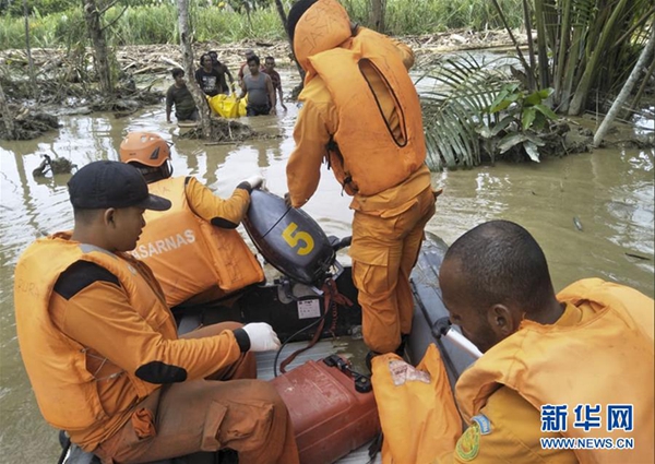 3月17日,在印度尼西亞巴布亞省森塔尼,搜救人員開展搜救行動。新華社發(fā)