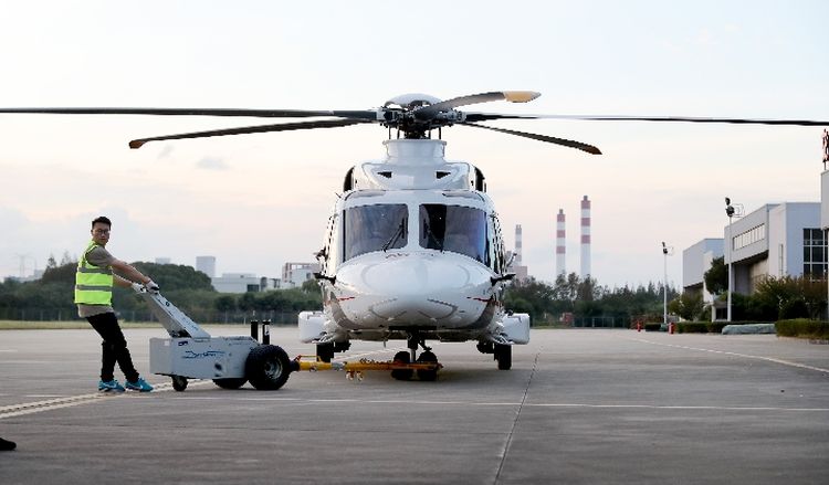 作為首屆中國國際進口博覽會上的展品,意大利萊奧納多直升機公司AW189直升機入駐智能及高端裝備展區(qū)。(新華社記者方喆攝)