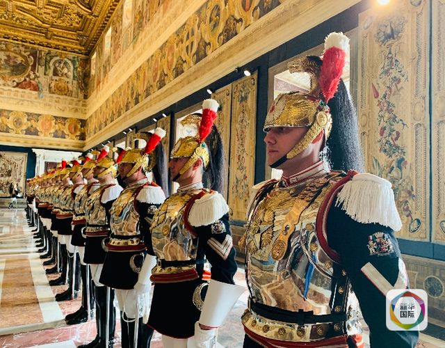 3月22日,國家主席習近平在羅馬同意大利總統(tǒng)馬塔雷拉舉行會談。會談前,馬塔雷拉總統(tǒng)為習近平舉行隆重歡迎儀式。圖為意大利禮兵在總統(tǒng)府列隊準備迎接習近平。(新華社記者蘭紅光攝)