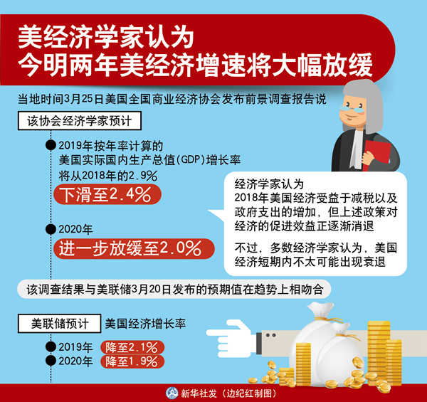 新華社華盛頓3月25日電(記者許緣 鄧仙來(lái))美國(guó)全國(guó)商業(yè)經(jīng)濟(jì)協(xié)會(huì)25日發(fā)布前景調(diào)查報(bào)告說(shuō),該協(xié)會(huì)經(jīng)濟(jì)學(xué)家預(yù)測(cè),主要受全球經(jīng)濟(jì)增長(zhǎng)放緩和美國(guó)貿(mào)易政策影響,今明兩年美國(guó)經(jīng)濟(jì)增速將大幅放緩。