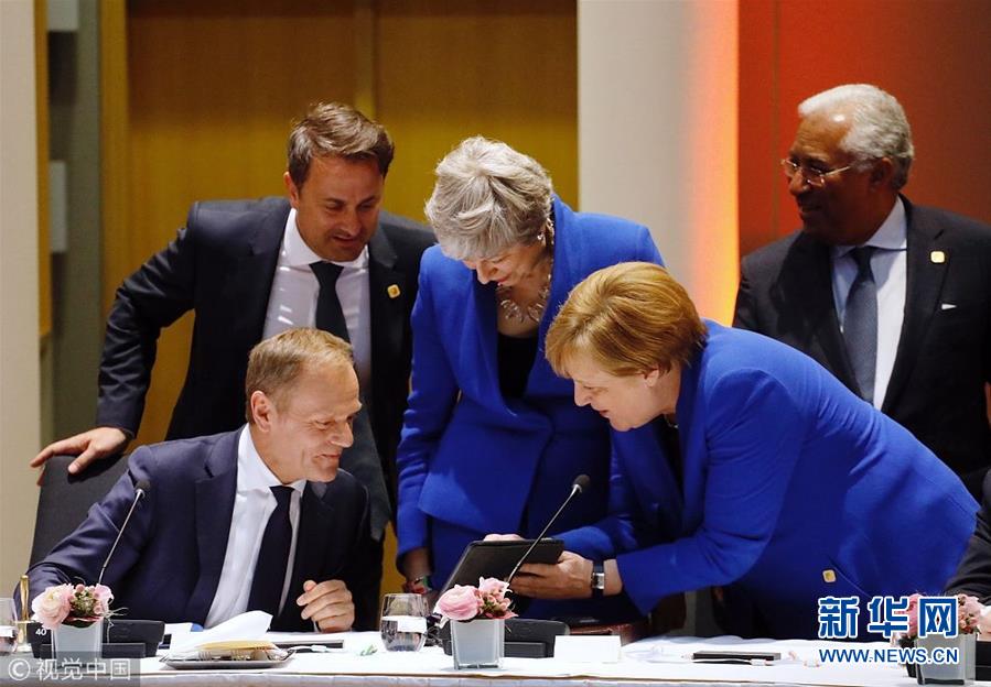 當(dāng)?shù)貢r間2019年4月10日,比利時布魯塞爾,歐盟領(lǐng)導(dǎo)人會議召開,討論英國“脫歐”議題。據(jù)路透社消息,歐盟各成員國達(dá)成一致,允許英國延期“脫歐”至10月底,6月份歐盟還將對此決定再次評估。歐洲理事會主席圖斯克表示,歐盟各成員國達(dá)成一致,允許英國延期“脫歐”,現(xiàn)在他將與英國首相特雷莎·梅舉行會談,確定英國是否接受這一提議。(圖片來源:視覺中國)
