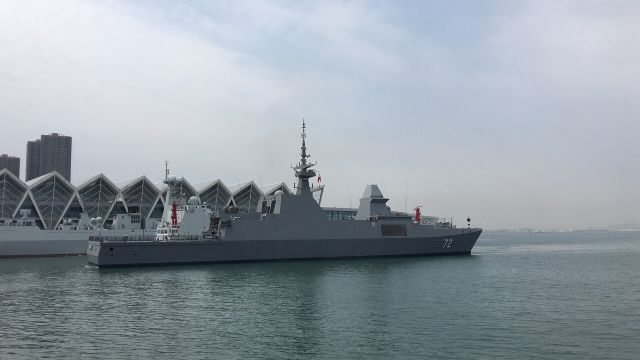 據(jù)了解,新加坡海軍“堅(jiān)強(qiáng)”號護(hù)衛(wèi)艦(舷號72),排水量3200噸,長114.8米,寬16.3米,桅高35米,航速27節(jié)。