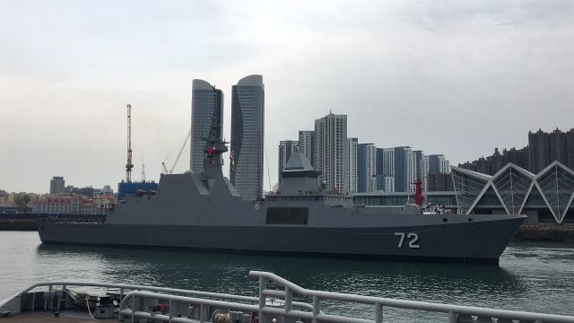 新華社青島4月19日電(記者趙新兵、梅世雄)4月19日10時(shí)許,新加坡海軍“堅(jiān)強(qiáng)”號護(hù)衛(wèi)艦緩緩駛?cè)肭鄭u大港碼頭。這是參加中國人民解放軍海軍成立70周年多國海軍活動到訪的第一艘外國海軍艦艇。
