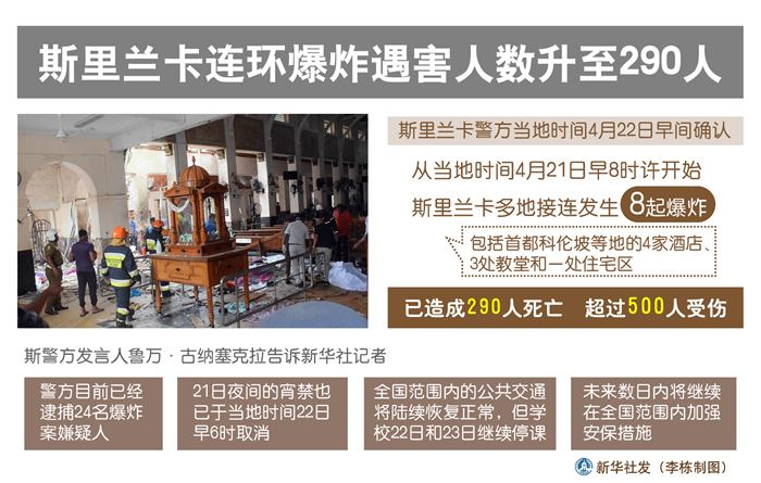 新華社科倫坡4月22日電(記者朱瑞卿 唐璐)斯里蘭卡警方22日早間確認(rèn),該國(guó)21日發(fā)生的8起爆炸已造成290人死亡,超過(guò)500人受傷。