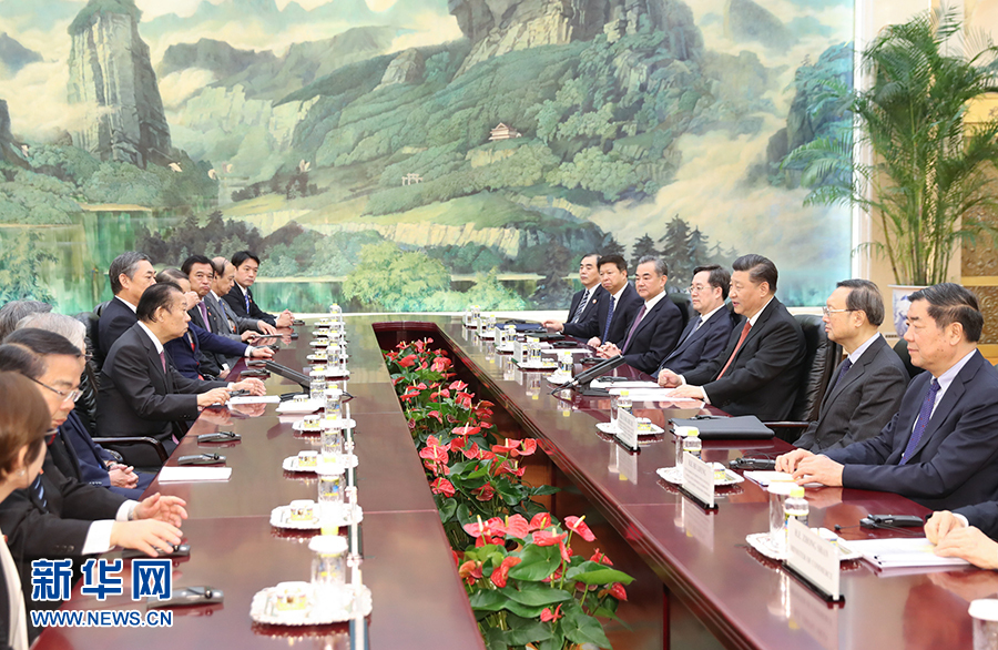 習(xí)近平指出,當(dāng)前,中日關(guān)系重回正常軌道,呈現(xiàn)積極發(fā)展勢(shì)頭。雙方要恪守中日四個(gè)政治文件確立的各項(xiàng)原則,堅(jiān)持和平友好大方向,持續(xù)深化互利合作,推動(dòng)兩國關(guān)系健康穩(wěn)定發(fā)展。要把中日“互不構(gòu)成威脅”、“互為合作伙伴,相互支持對(duì)方和平發(fā)展”的政治共識(shí)落到實(shí)處,把兩國各領(lǐng)域交流合作推向新水平。雙方要深挖合作潛力。中方歡迎日方繼續(xù)深入?yún)⑴c中國改革開放,希望日方更加積極參與共建“一帶一路”。雙方要加強(qiáng)溝通和協(xié)調(diào),共同維護(hù)多邊主義和自由貿(mào)易,共同推動(dòng)建設(shè)開放型世界經(jīng)濟(jì)。中方支持日方辦好二十國集團(tuán)領(lǐng)導(dǎo)人大阪峰會(huì)。今年是中日青少年交流促進(jìn)年,雙方要在兩國民間特別是青少年當(dāng)中廣泛播撒友好種子,推進(jìn)民心相通。