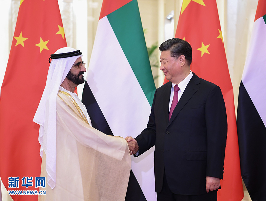 習近平指出,去年7月我訪問阿聯(lián)酋期間,兩國宣布建立全面戰(zhàn)略伙伴關(guān)系,揭開中阿關(guān)系發(fā)展新篇章。中方視阿聯(lián)酋為共建“一帶一路”的重要合作伙伴。雙方要穩(wěn)步推進以能源合作為主軸、以投資和基礎(chǔ)設(shè)施建設(shè)為兩翼、以高新技術(shù)為增長點的務(wù)實合作。下階段要對接創(chuàng)新發(fā)展戰(zhàn)略,打造兩國合作新增長點。要深化打擊恐怖主義和極端勢力等安全領(lǐng)域合作,共同維護兩國和地區(qū)安全穩(wěn)定。副總統(tǒng)先生提出的“擁抱中國”計劃深受阿聯(lián)酋民眾歡迎,要不懈推動兩國人文交流。中方支持阿方明年舉辦中東地區(qū)首屆世博會。