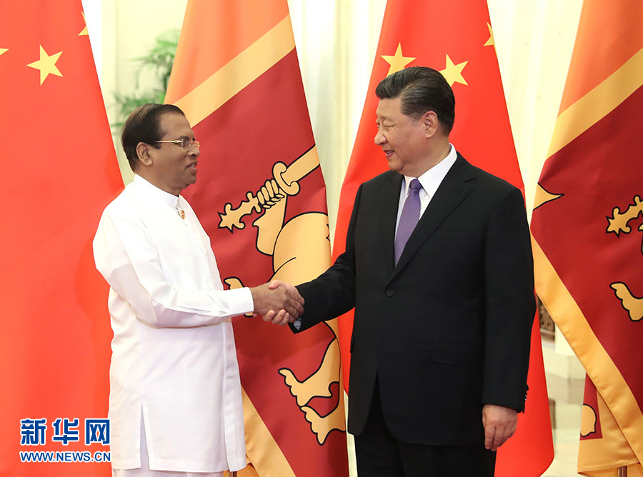 5月14日,國(guó)家主席習(xí)近平在北京人民大會(huì)堂會(huì)見(jiàn)來(lái)華出席亞洲文明對(duì)話大會(huì)的斯里蘭卡總統(tǒng)西里塞納。 新華社記者 李濤 攝
